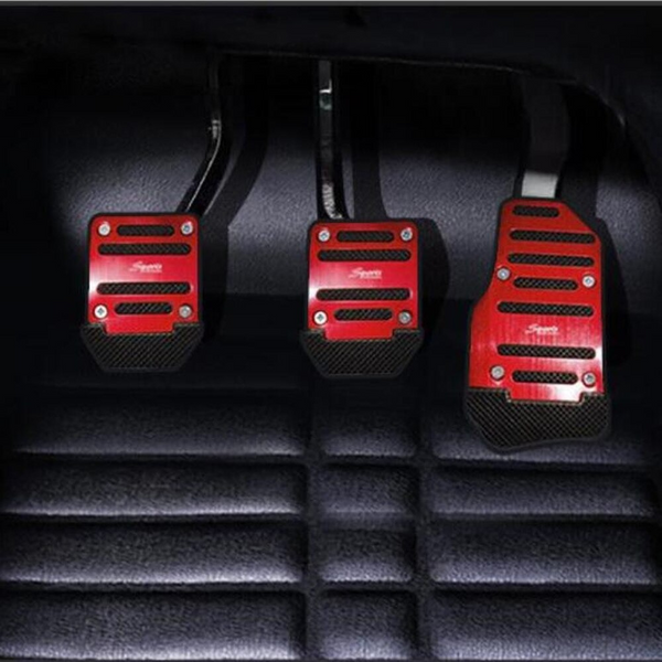 Dette komplette settet er perfekt for kjøretøy med manuell overgang. Hver del er laget av høykvalitets aluminiumslegering og slitesterk gummifôr som sikrer at føttene dine har riktig grep når du kjører.