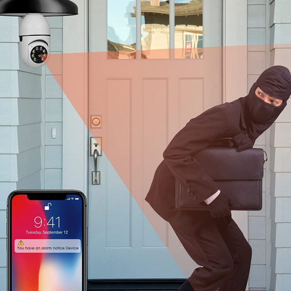 Overvåk eiendommens omgivelser ved å installere Light Bulb Camera™! Denne diskrete sikkerhetsenheten for hjemmet kan installeres på en hvilken som helst universell E27-pæresokkel – det er ikke nødvendig å sette opp ledninger eller skru inn hull.