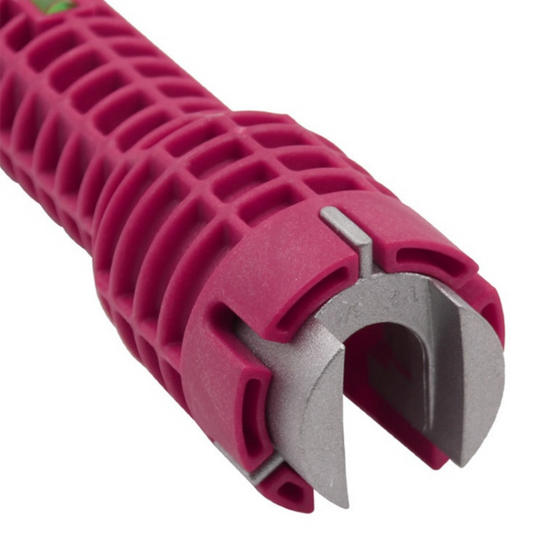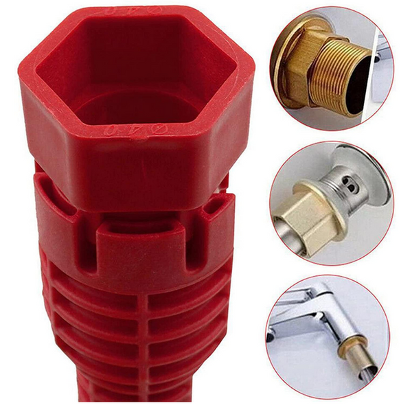 Gjør det lettere å dreie vanskelig tilgjengelige monteringsmuttere på kraner, sprøyter og kulekraner. Dette unike rørleggerverktøyet hjelper deg raskt å stramme eller løsne muttere eller skruer som er gjemt bort på vanskelig tilgjengelige steder!
