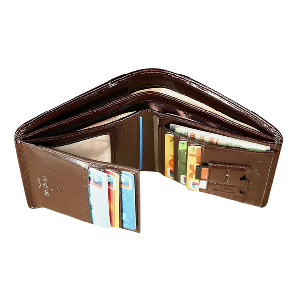 Det er så praktisk å bære verdisakene dine med The Gentleman's Wallet™. Denne lommeboken er bygget med flere spor for å holde dine viktige kort. Den har også stor plass som er fin for oppbevaring av kontanter. Denne rustikke lommeboken er laget av premium PU-skinn og gir deg en retrofølelse og et stilig utseende!