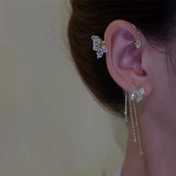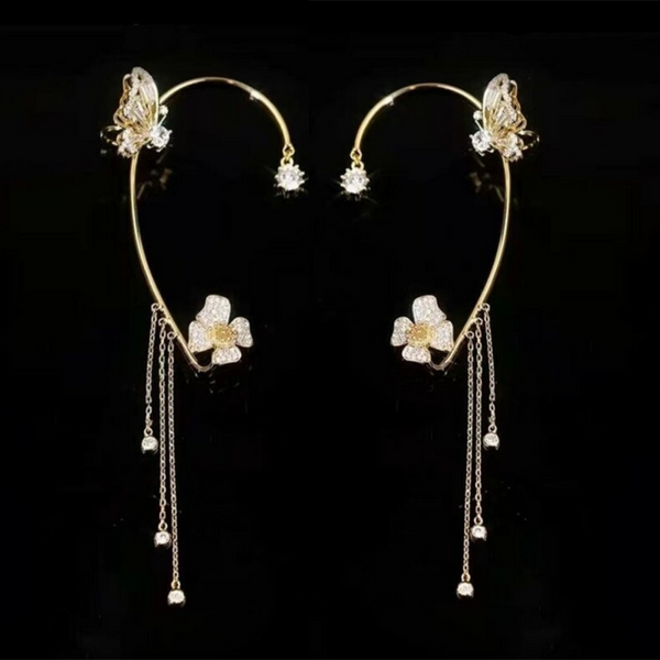 La din eleganse skinne gjennom dette paret med fantastiske øredobber som passer til enhver stil! Se elegant ut uten anstrengelse ved hjelp av den skinnende zirkon-sommerfuglen og blomsterdesignen til disse øredobbene!