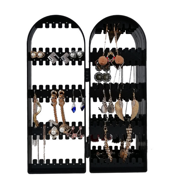 Den er enkel å brette sammen når den ikke er i bruk, denne smykkearrangøren har fire hengsler, slik at du enkelt kan gjemme den et sted uten å ta en enorm mengde oppbevaringsplass. Designet for å passe til enhver butikk eller soverom, vil dette førsteklasses smykkestativet legge til et element av luksus til rommet ditt.