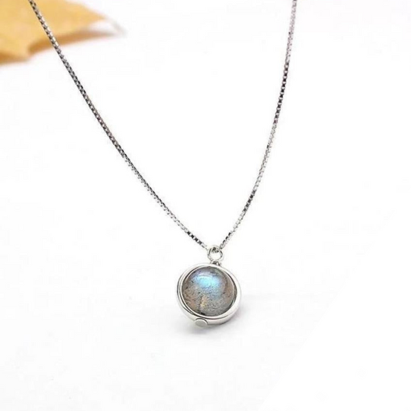 De Moonstone Energy Necklace™ er et smykke laget med vakker labradorittstein som skinner sterkt hele dagen. I tillegg er den justerbare kjeden laget av sterling sølv for å gi stilen din et elegante preg.