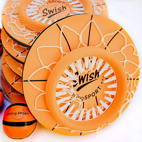 Ceiling Hoop™ er den originale taklekebasketballbøylen for barn å leke med. Skyt trygt fra sengen, stolen, gulvet, kontoret, soverommet, spillerom eller hvor som helst med flatt tak. Denne sommeren, glem bassengbasketkurven eller utendørs leker og lek mot taket.