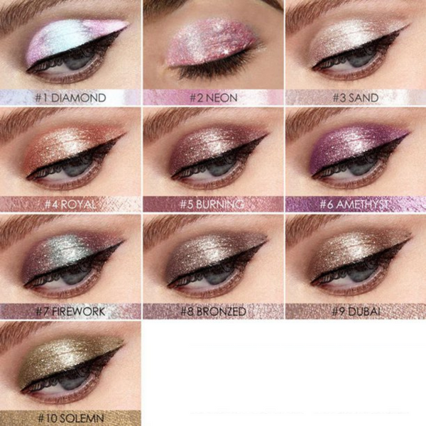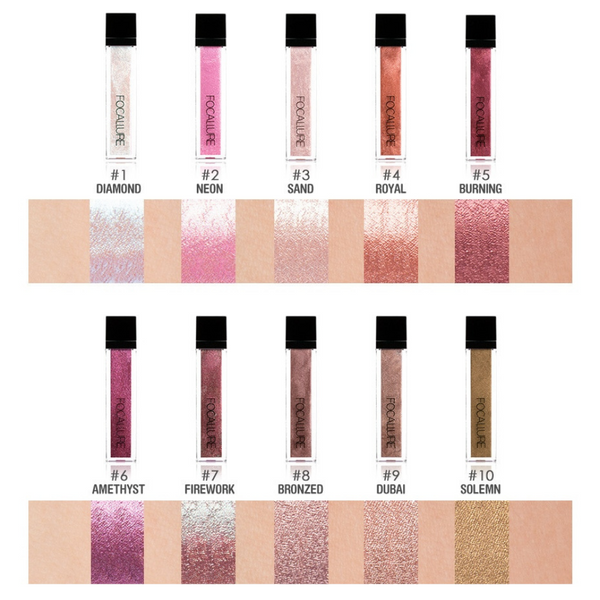 For å oppnå ønsket fargedybde kan du påføre Liquid Glitter Eyeshadow™ flere ganger. Den er allsidig slik at du kan bruke den til en hverdagslook, en fancy fest eller en morsom kveld med venner! Den skimrende øyenskyggen forblir jevn og stabil uten klebrighet, flekker og varer hele dagen!