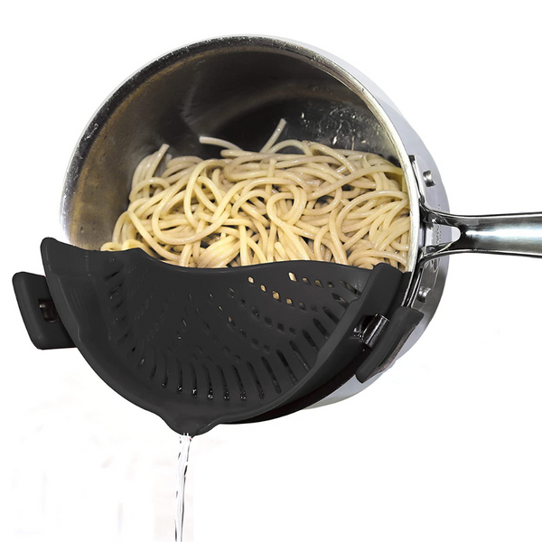 Denne Clip-on Pan Strainer™ er laget med to solide klips for å holde silikonsilen på pannen. Den smarte designen gjør denne silen universelt tilpassbar til alle boller og panner. Grytesilen er halvparten så stor som en tradisjonell sil, noe som gjør den veldig praktisk på kjøkken med begrenset plass!