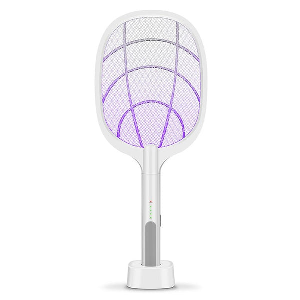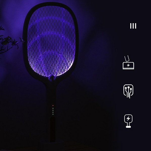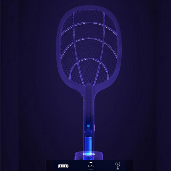 Du kan bruke den elektriske racketen som en stasjonær zapper med insekttiltrekkende lilla lysdioder, i tillegg til å bruke den som en håndholdt racket for å slå flygende insekter. Myggene kunne ikke motstå det innebygde lyset når det ble plassert i et mørkt rom. Det er en betydelig fordel i forhold til andre modeller!