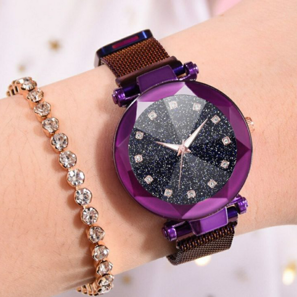 Vår Galaxy Watch™ er en stilig klokke med bakgrunnen til stjernehimmelen. Det er en delikat, feminin klokke, det er utvilsomt et moteriktig stykke som vil utfylle enhver stilig look. Det er en perfekt gave til deg selv, din beste venn eller din mor!
