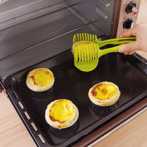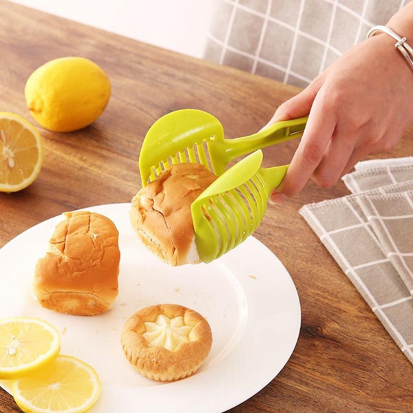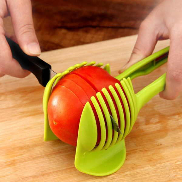 Tilbereder du masse skiver av tomater, sitroner, appelsiner og annen rund frukt eller grønnsaker? Spar fingeren risikoen for kutt med vårt Slice Tool™! Dette flotte kjøkkenverktøyet lar deg holde frukt og grønnsaker på plass mens du skjærer dem i skiver!