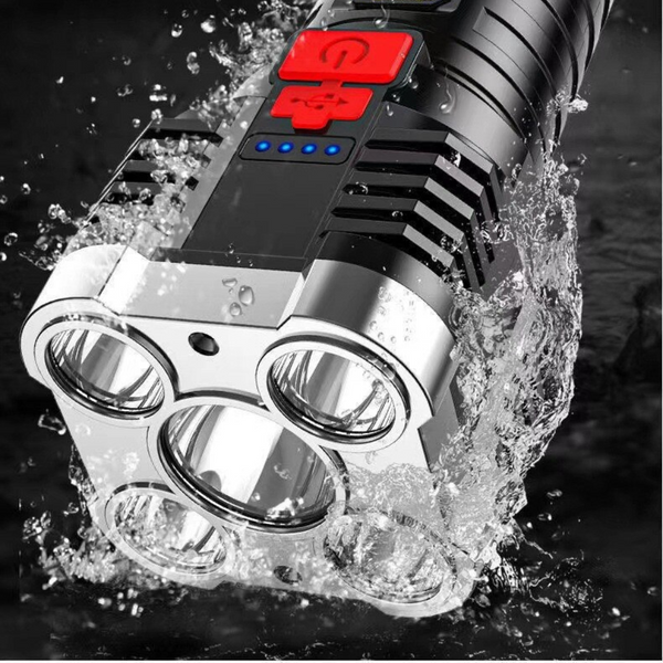 Med mange interessante funksjoner er vår Super Bright Flashlight™ den eneste lyskilden du trenger når du er utendørs. Den har en vanntett klassifisering på IP65 perfekt for kraftig regn, den har 7 lysmoduser som passer for alle typer bruk, og litiumbatteriet med høy kapasitet er USB-oppladbart!